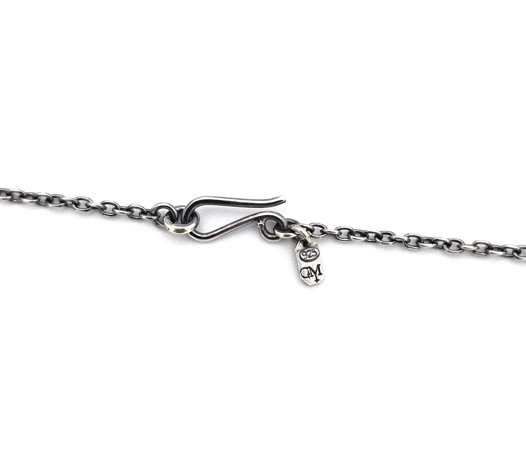 The Mirage Necklace features a Mahogany Obsidian set in an handmade setting showcasing an ornate cut-out on the back. Hanging from a 2mm thick cable chain.