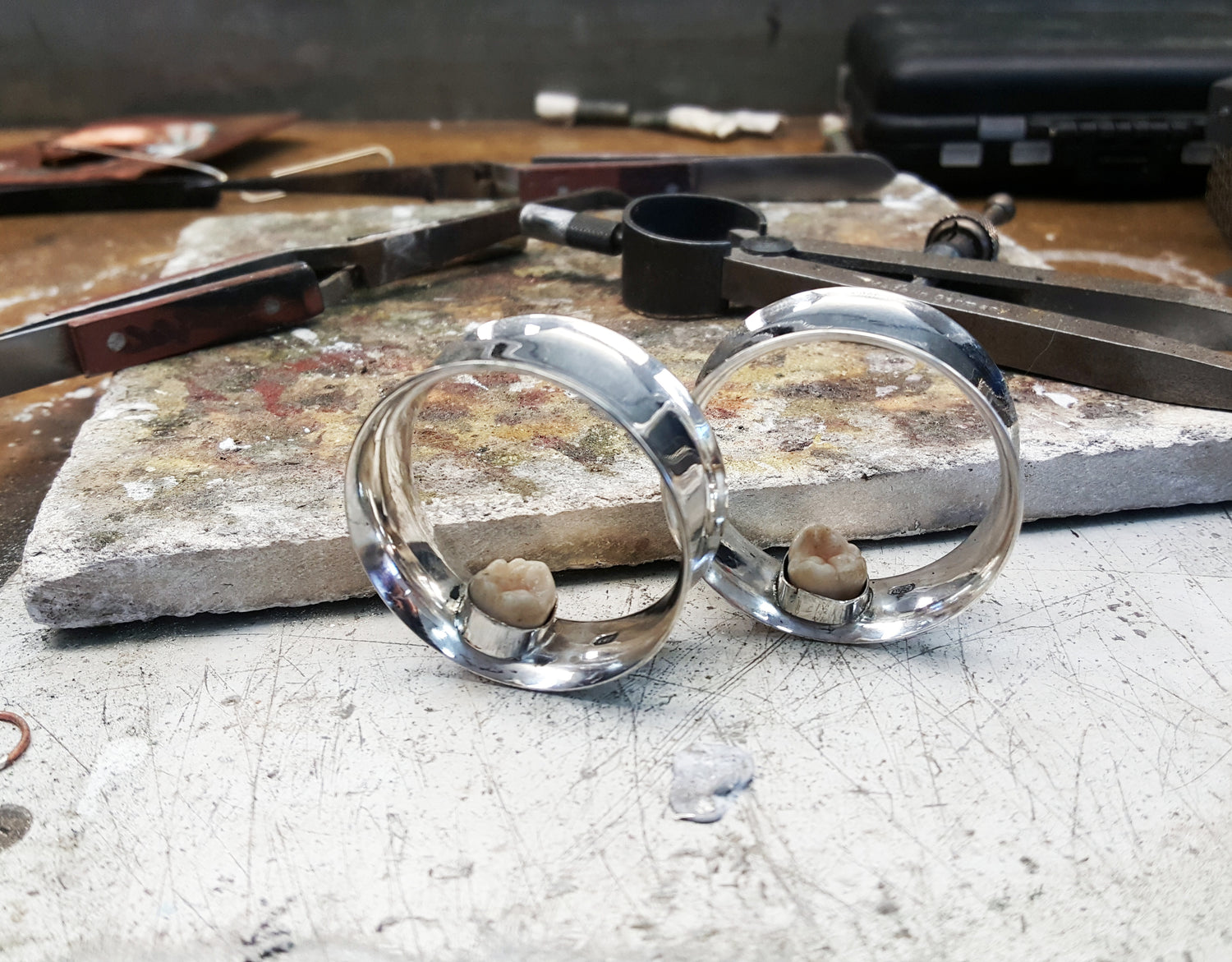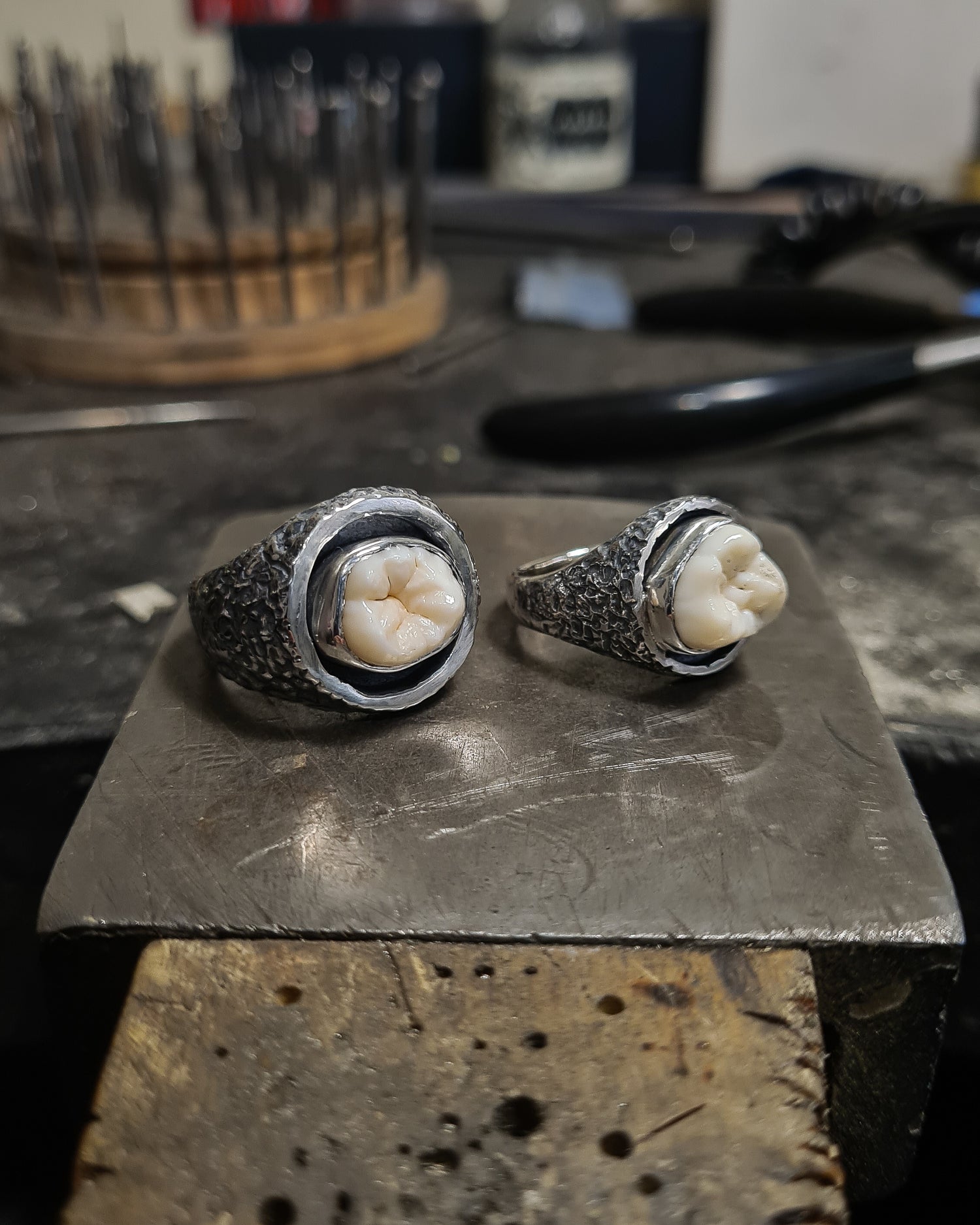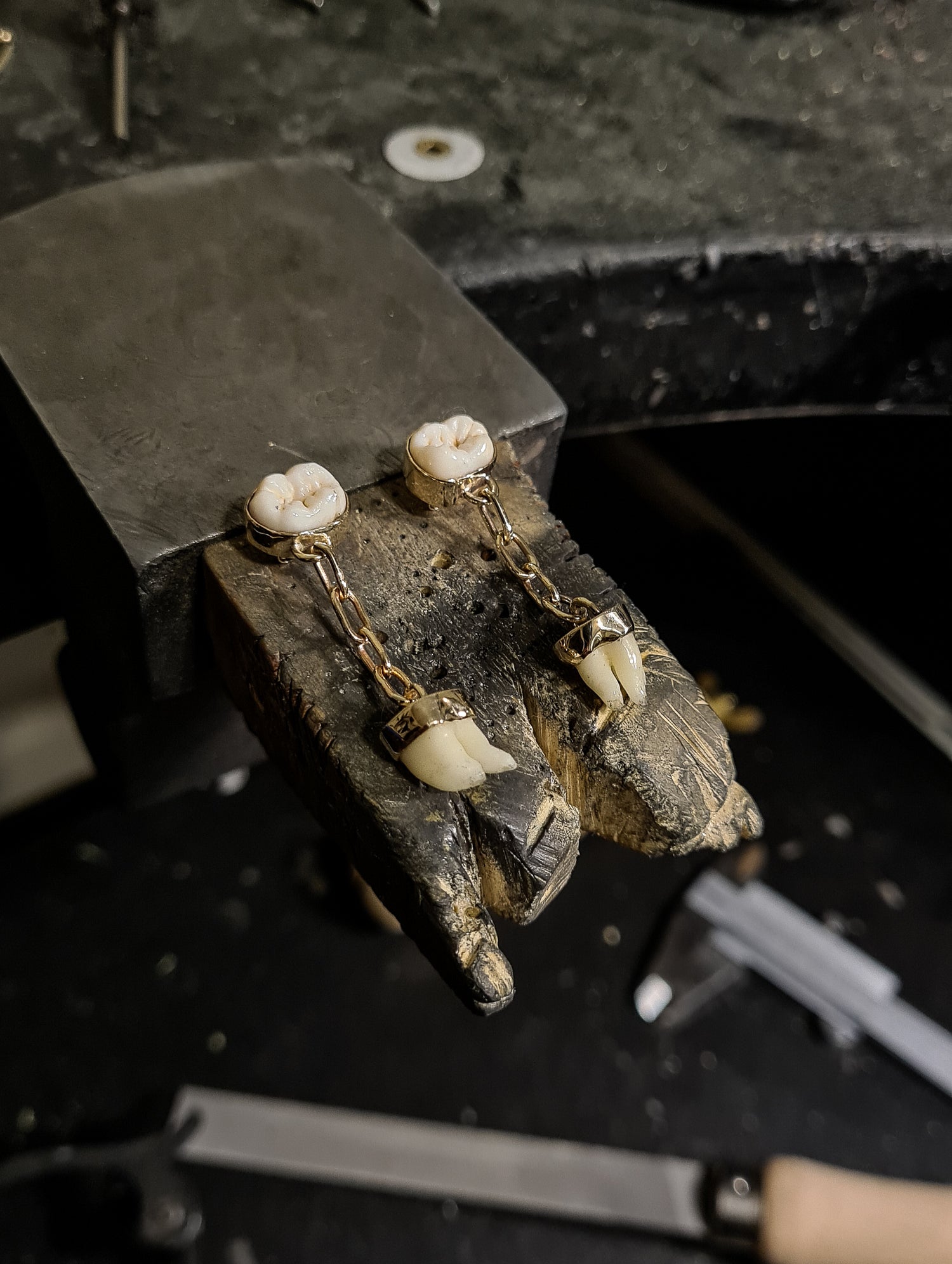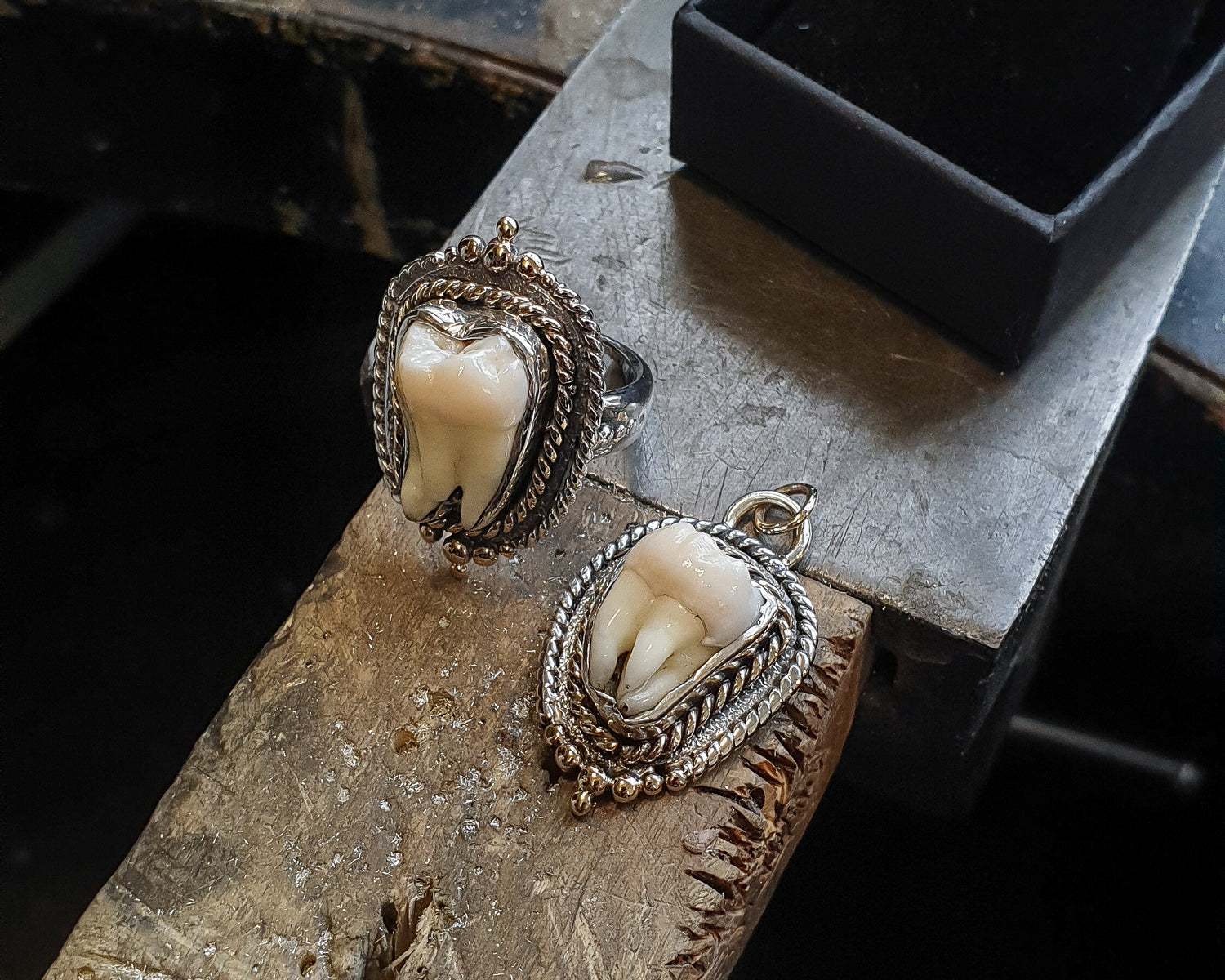 Below is a portfolio of tooth jewellery handmade by Grave Metallum