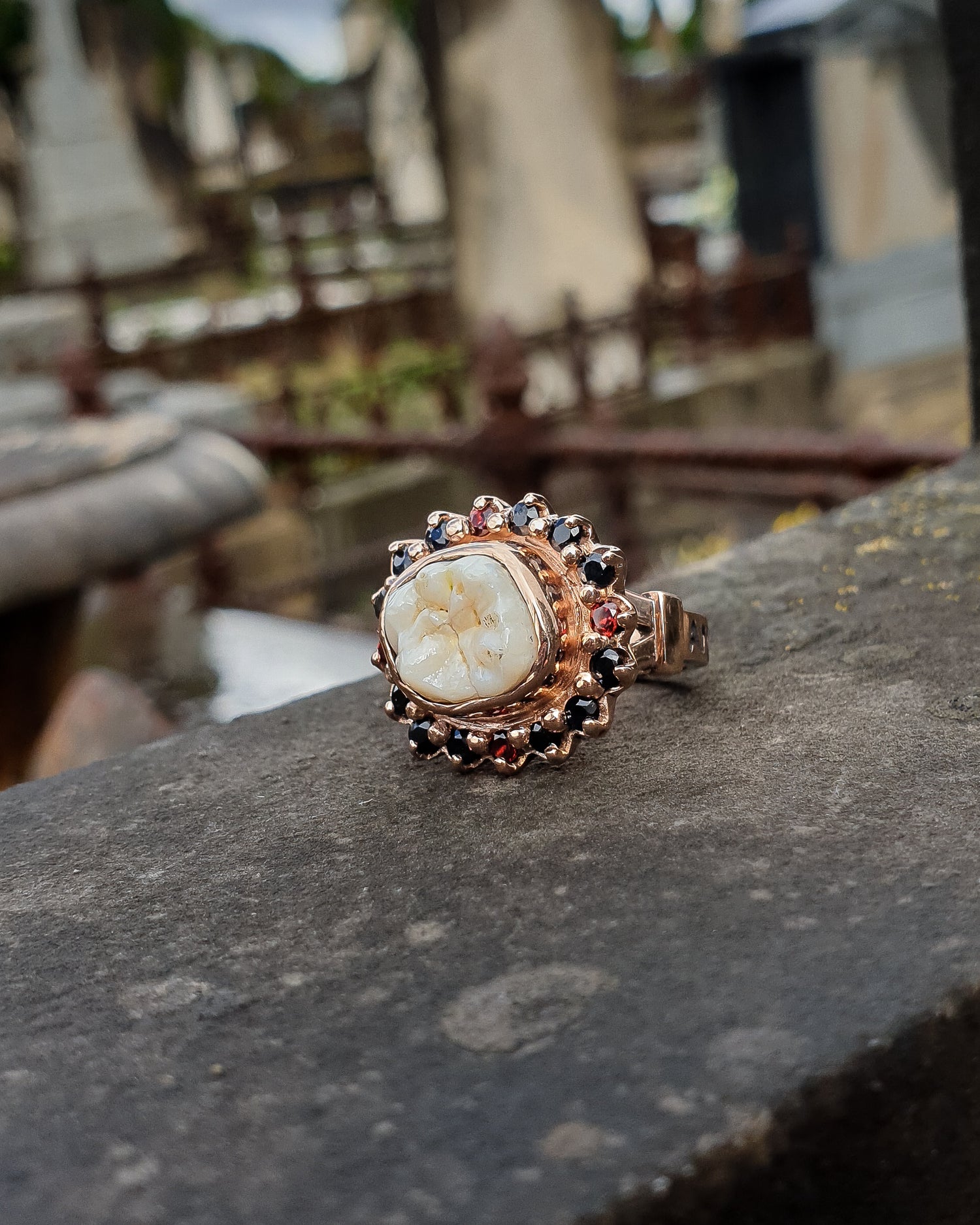 Drawing heavy inspiration from the Victorian era and Memento Mori, Grave Metallum specialises in creating inimitable tooth rings and jewellery. Working with all kinds of teeth, each piece is custom designed into an elegant adornment to your requirements.