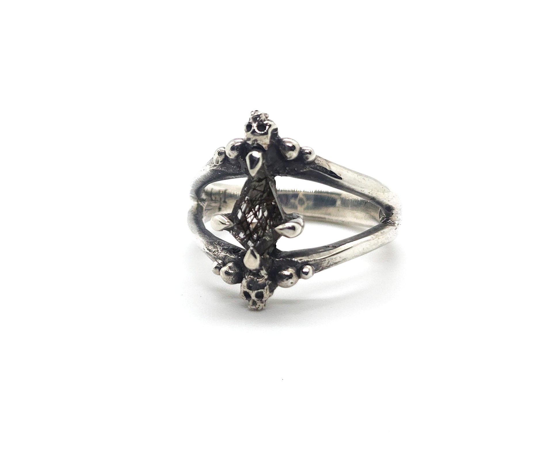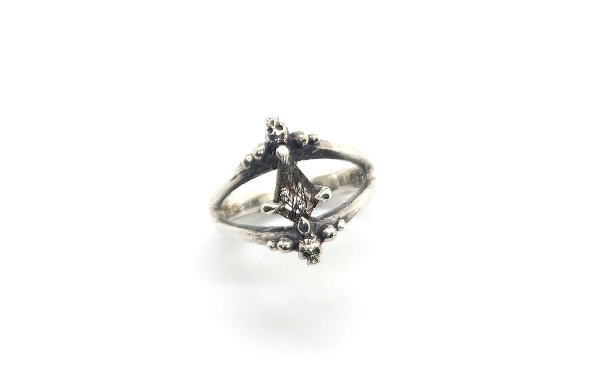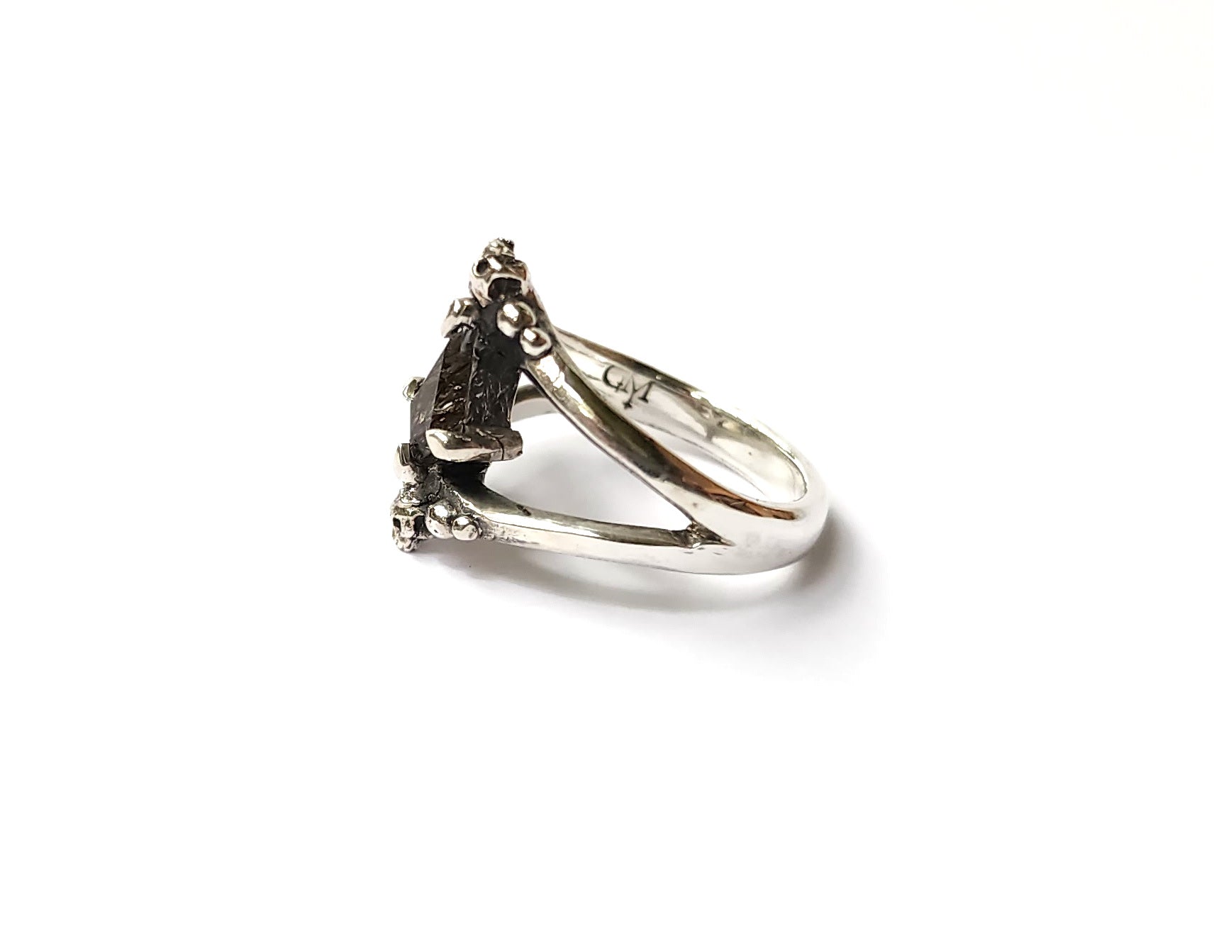 One-of-a-kind Rutilated Quartz ring, hand carved and cast in sterling silver