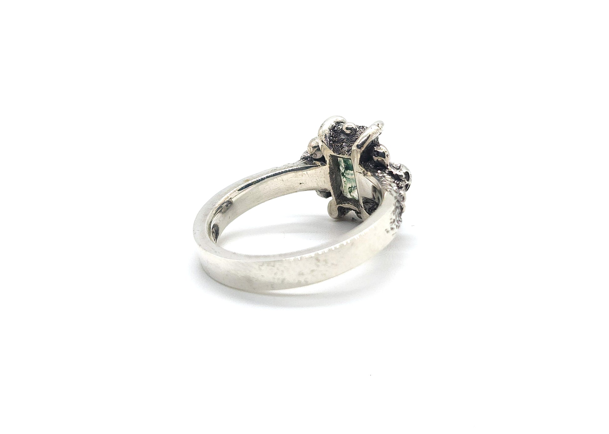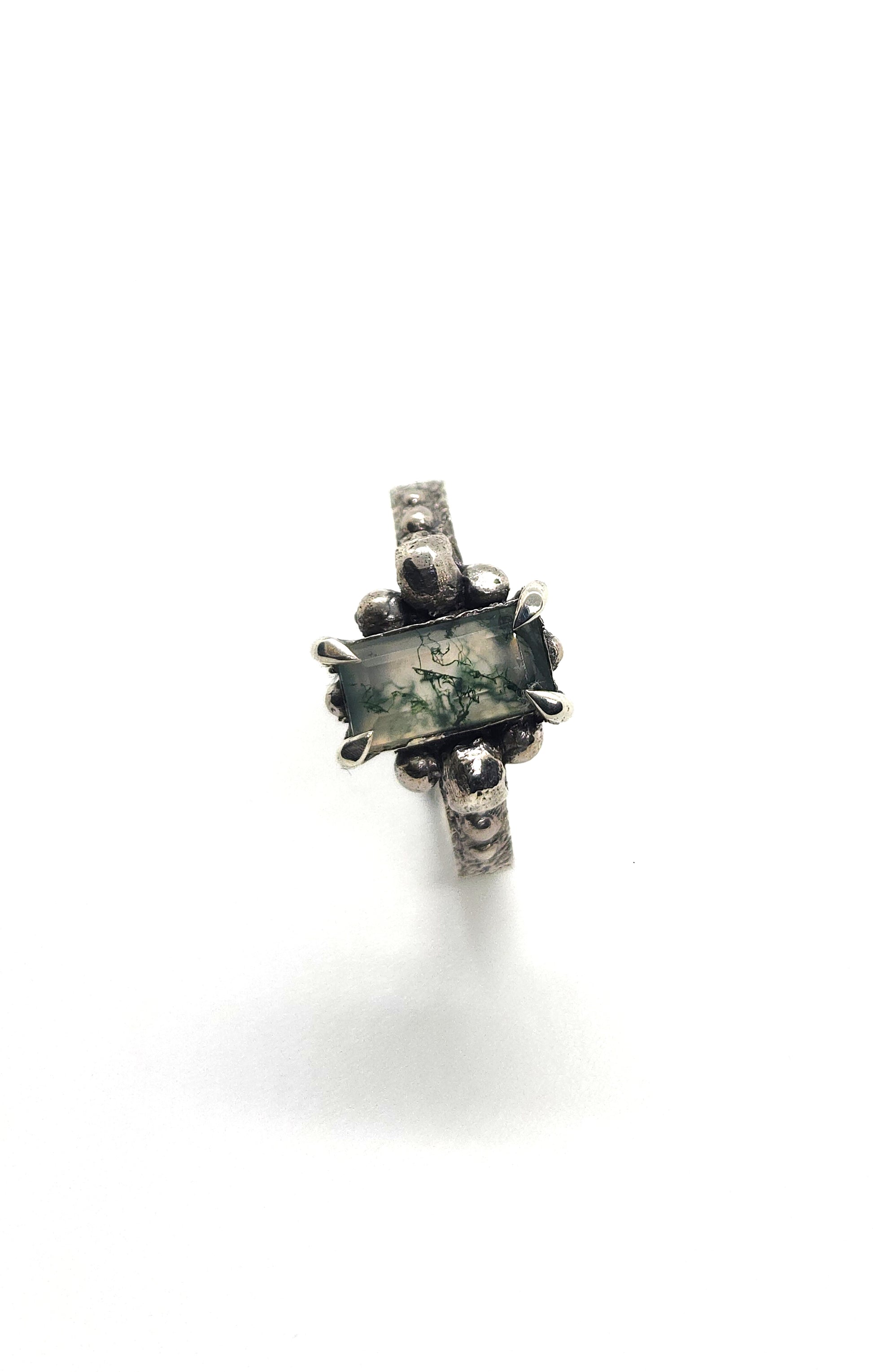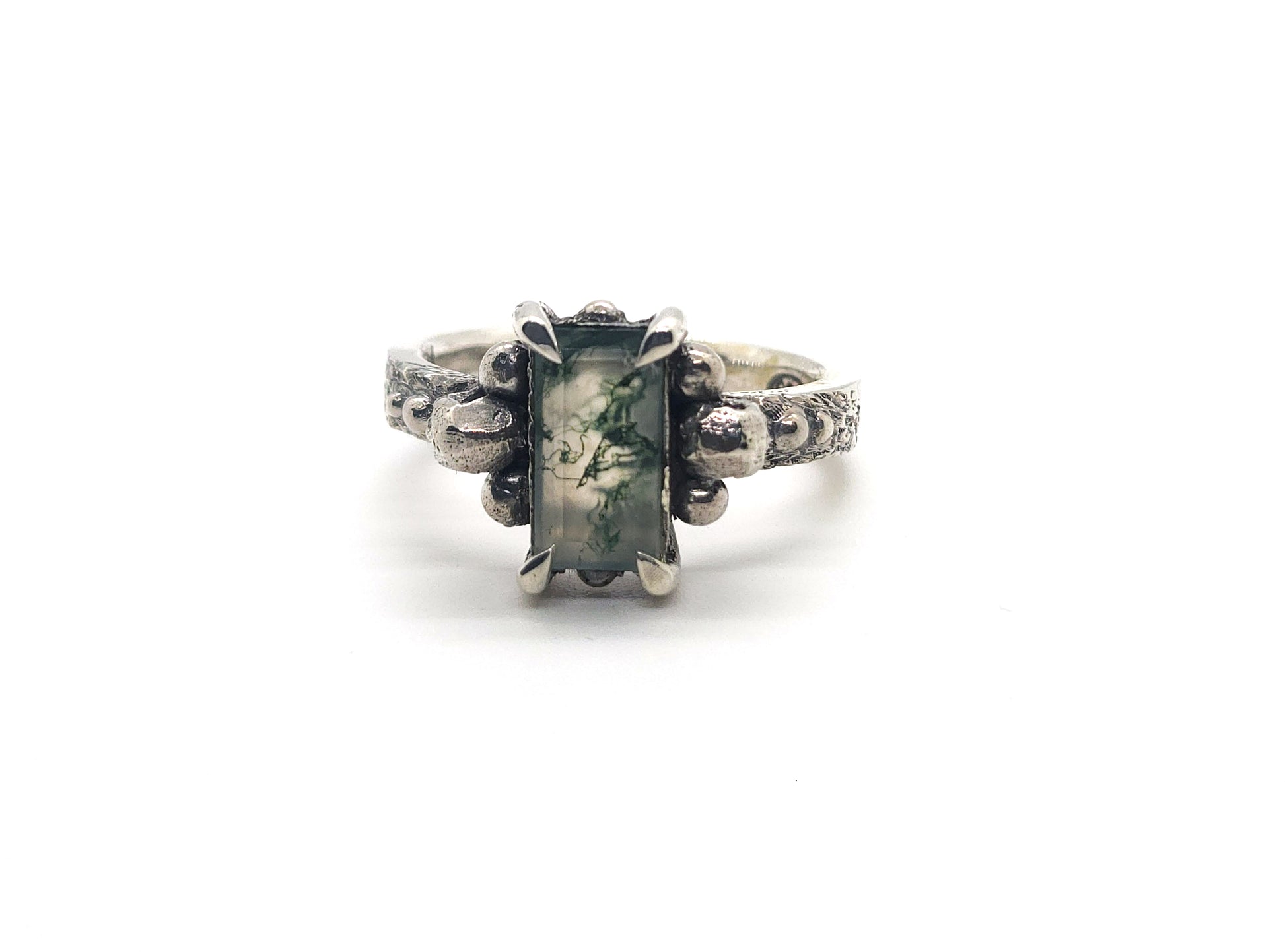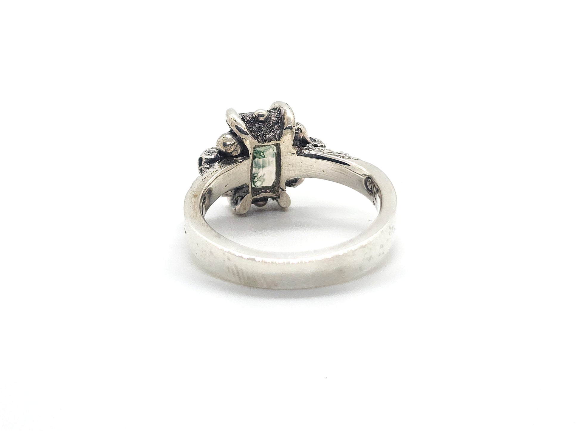One-of-a-kind Moss Agate ring, hand carved and cast in sterling silver
