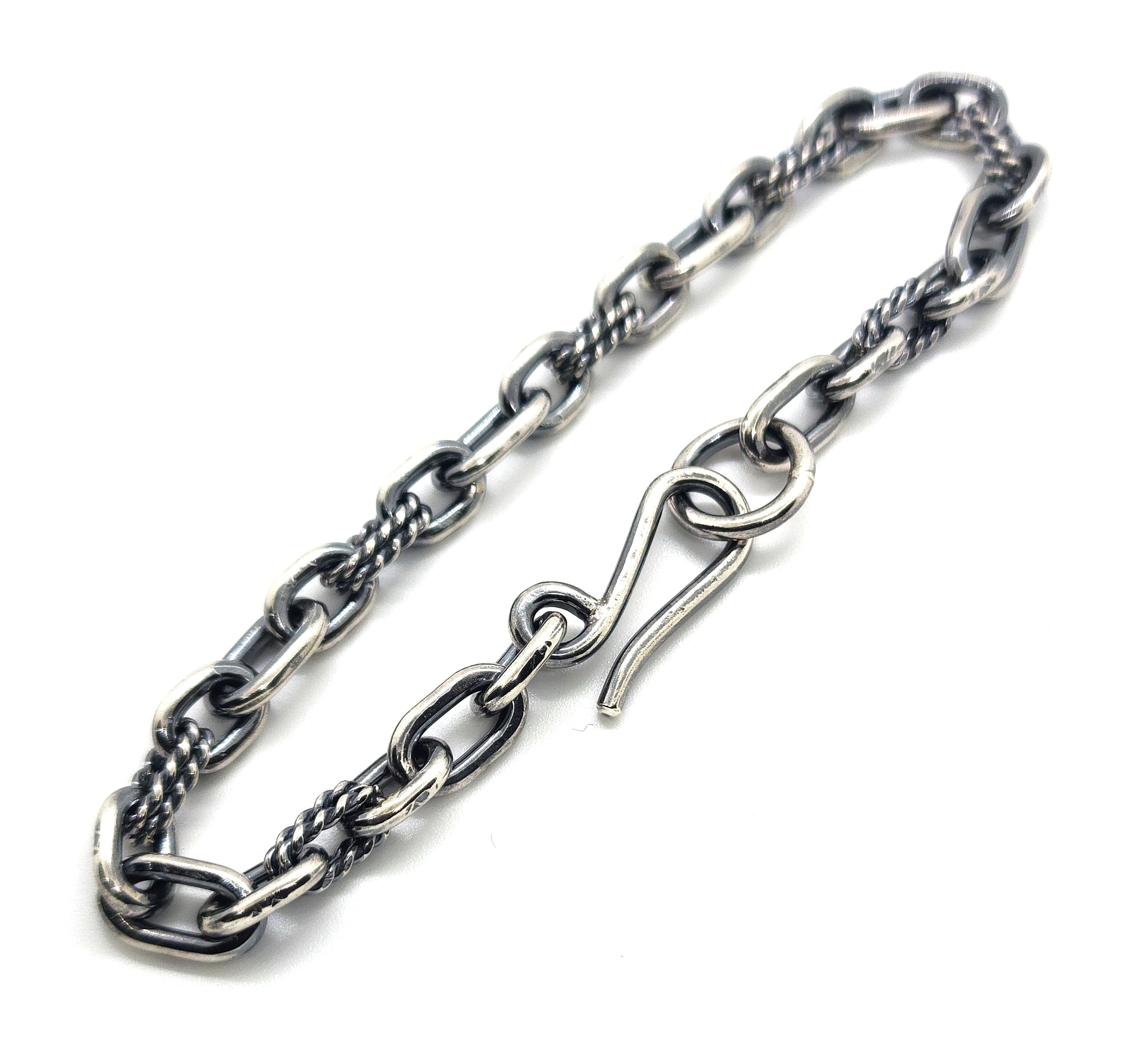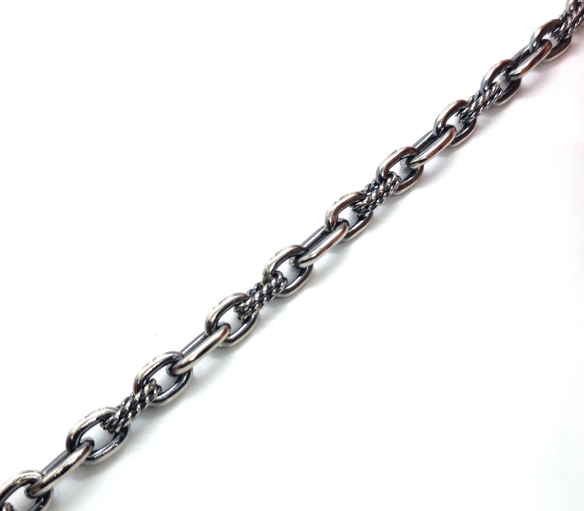 A handmade anchor chain with alternating rope links. Made in sterling silver